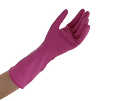 Gant Ménage Latex Rose Taille M, protection et confort réunis pour vos tâches ménagères. Flocage intérieur, surface antidérapante. Idéal pour la vaisselle, le nettoyage ou le jardinage. Offrez-vous sécurité et confort au quotidien !