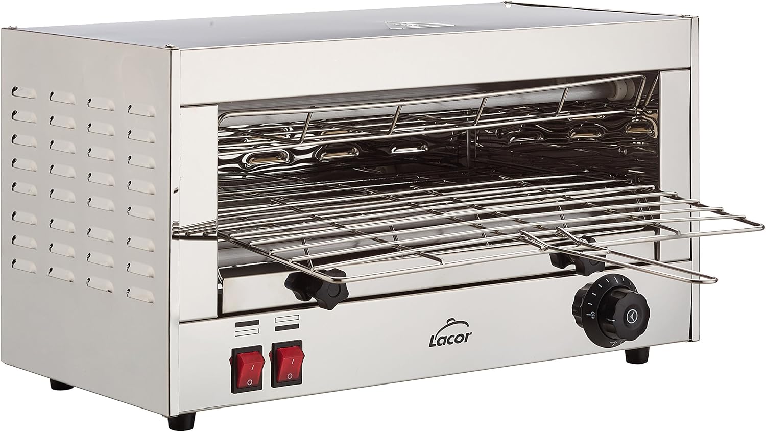 Ce grille-pain est conçu pour un usage professionnel et fonctionne avec des lampes infrarouges halogènes à quartz.