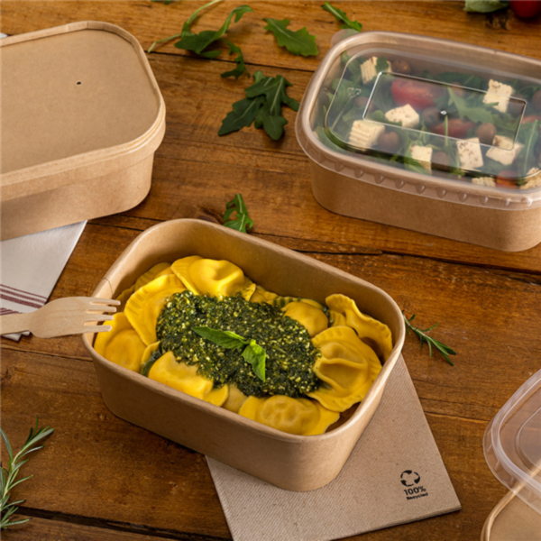 Récipients rectangulaires kraft avec couvercle en plastique idéaux pour repas à emporter, salades, etc.